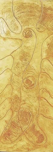 Serie «celtic women», 1998, 50 cm x 200 cm / Lehm auf Holzfaserplatte